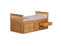 If you tend to have a few sleep overs, the Captain Bed is available in two other flavours. We have available one with guest bed and 3 drawer storage unit built in or one with a 4 drawer unit with a built in cupboard.