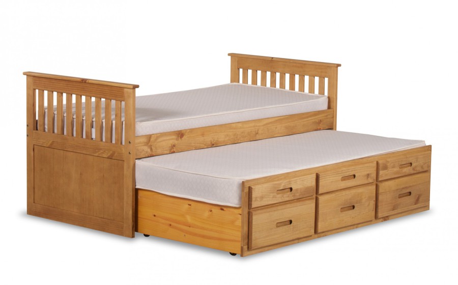 If you tend to have a few sleep overs, the Captain Bed is available in two other flavours. We have available one with guest bed and 3 drawer storage unit built in or one with a 4 drawer unit with a built in cupboard.